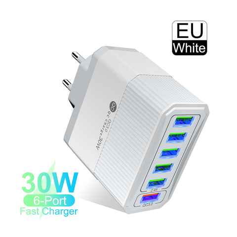 携帯電話の壁の充電器旅行アダプター30W QC3.0高速充電器6ポートUSBアダプター