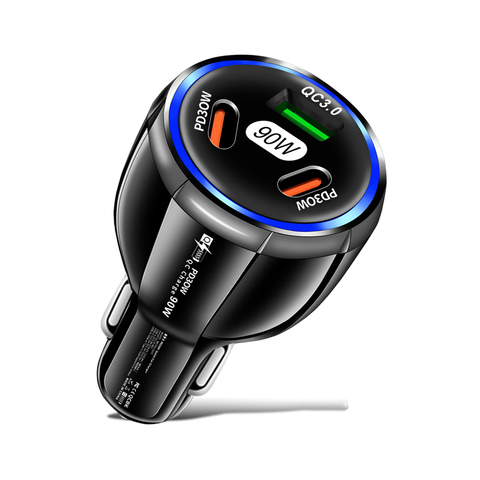 トレンド製品202390W3ポートカーチャージャーPD30W & QC3.0マルチポートタイプCシガレットライターUSBチャージャー